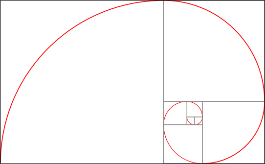 Observe que o próximo raio, 3, é a soma dos dois últimos raios, ou seja, de 1 e 2. E o raio 5, a soma dos dois últimos raios, ou seja, de 2 e 3, e assim por diante. A figura gerada é: