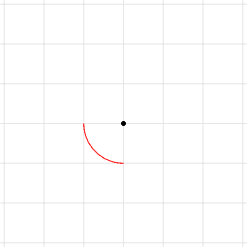 Em verdade, há sempre duas maneiras de traçarmos qualquer arco. Você pode começar de uma extremidade ou de outra. Vamos supor que queremos começar da extremidade de cima, que está no ponto (1, 2) (consegue perceber?). A partir dele, giro de 90 até 270°, com raio 2. Daí, escrevo: